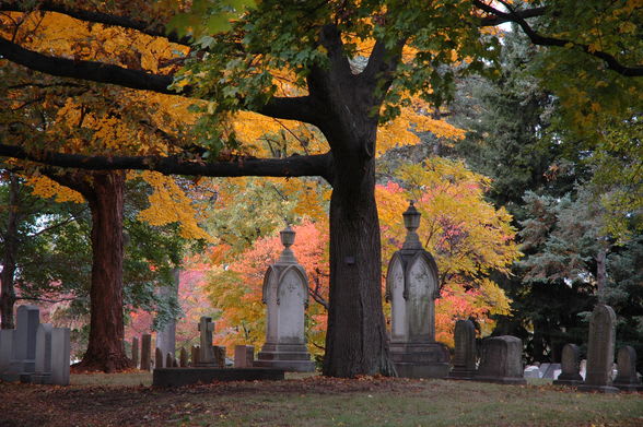 Last on our list, but definitely not the least is Mount Auburn Cemetery. If you’re looking for a little… spice in your fall foliage peeping, you gotta add some spooky to it by dropping by the cemetery!