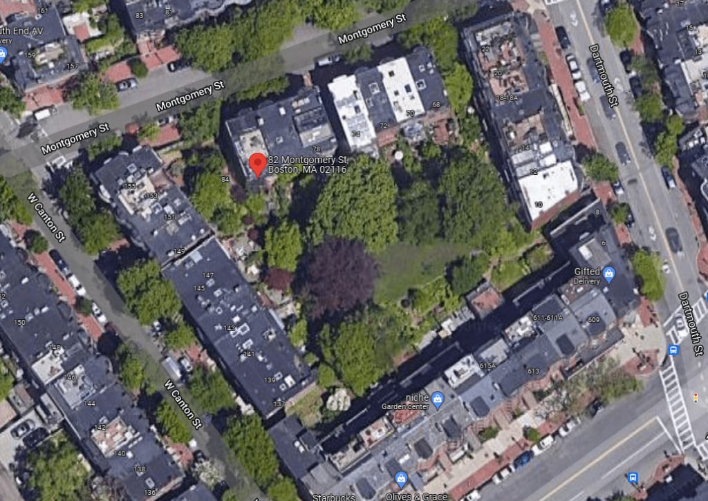 Montgomery Park is a green space inside a city block in the South End neighborhood of Boston.